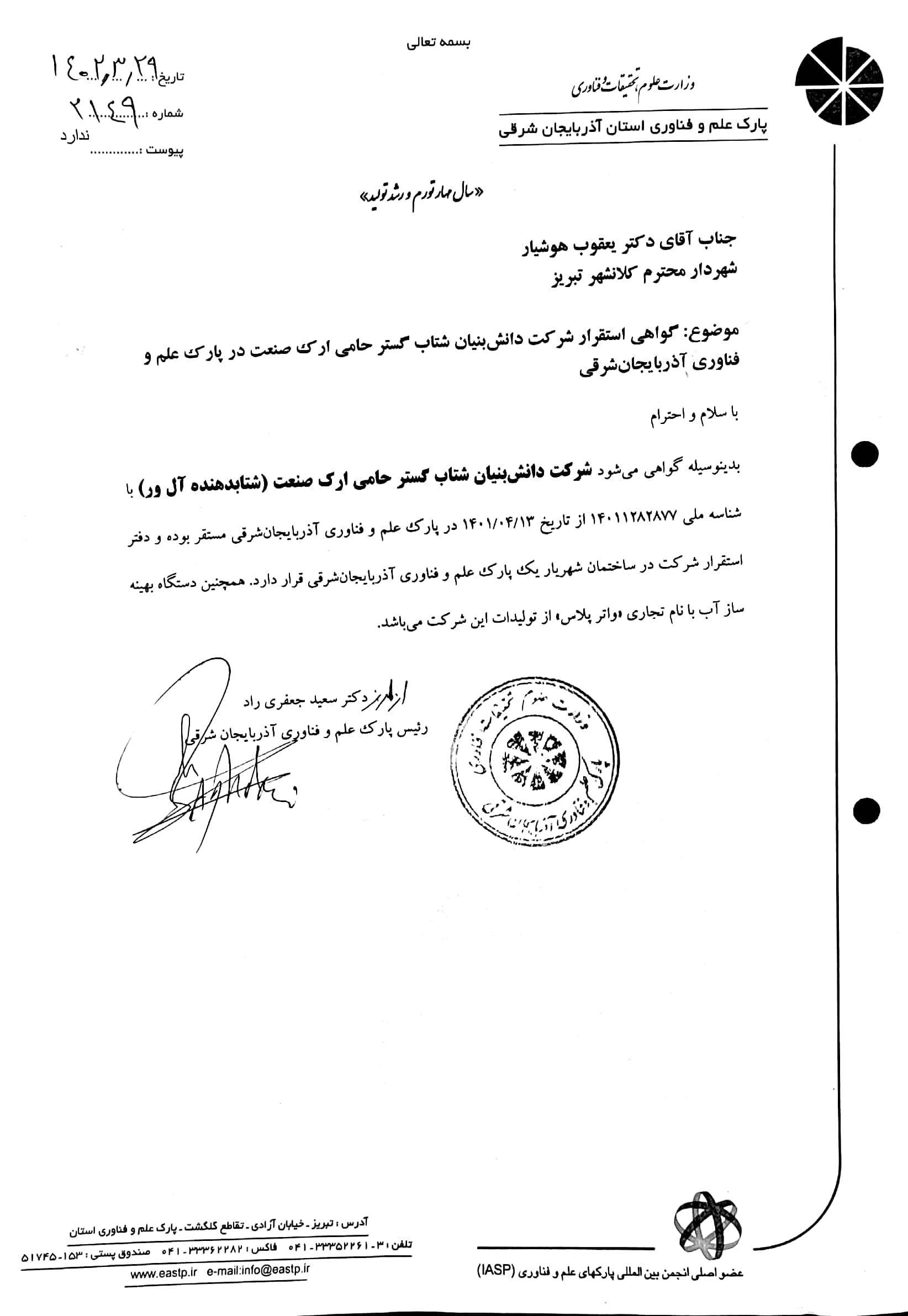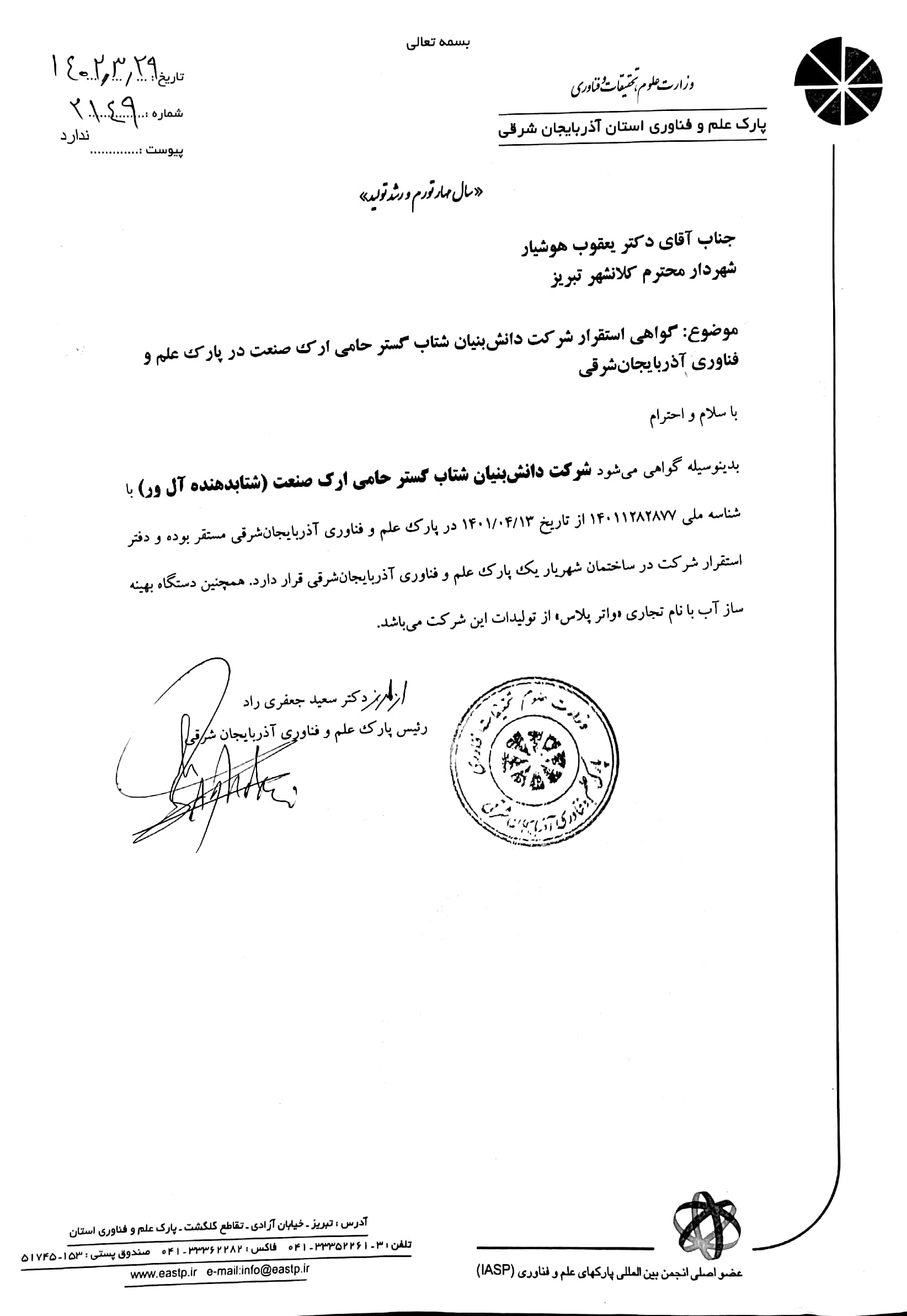 پارک علم و فناوری استان، طبقه اول، اتاق 211