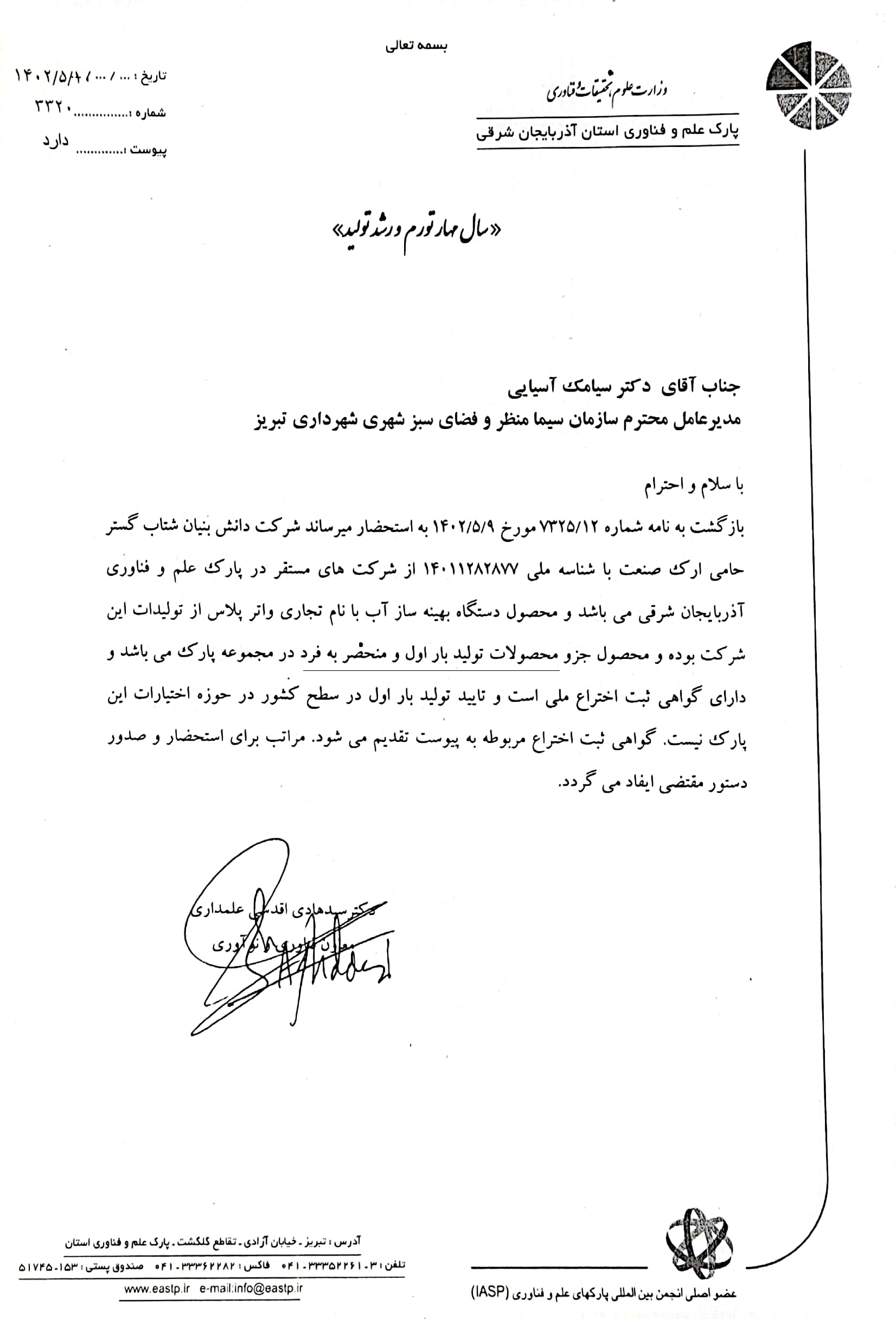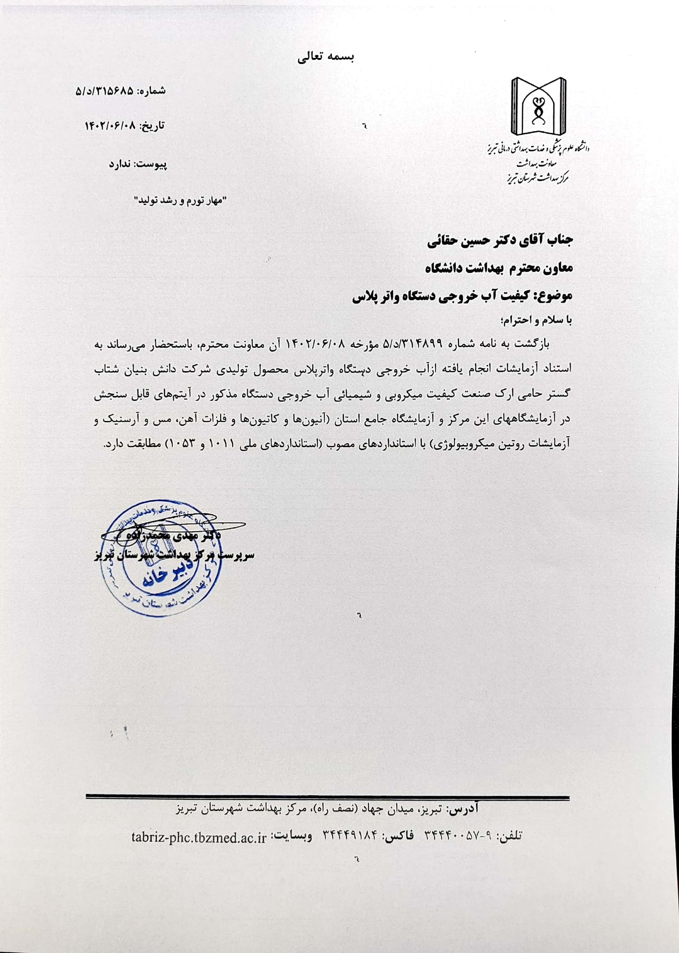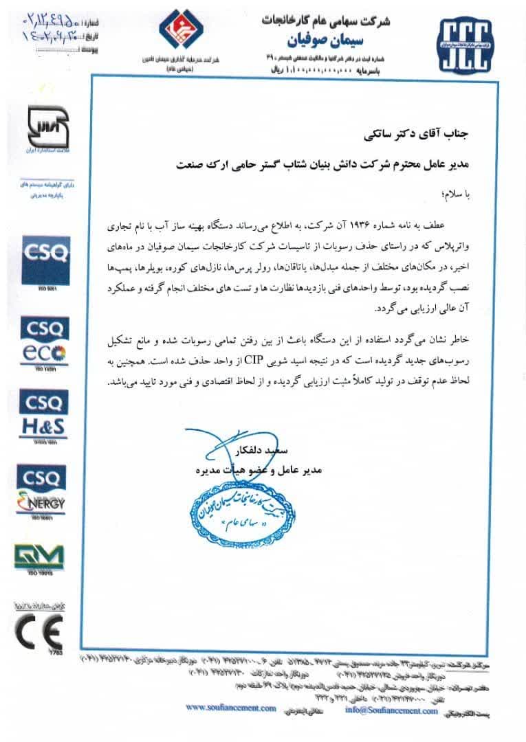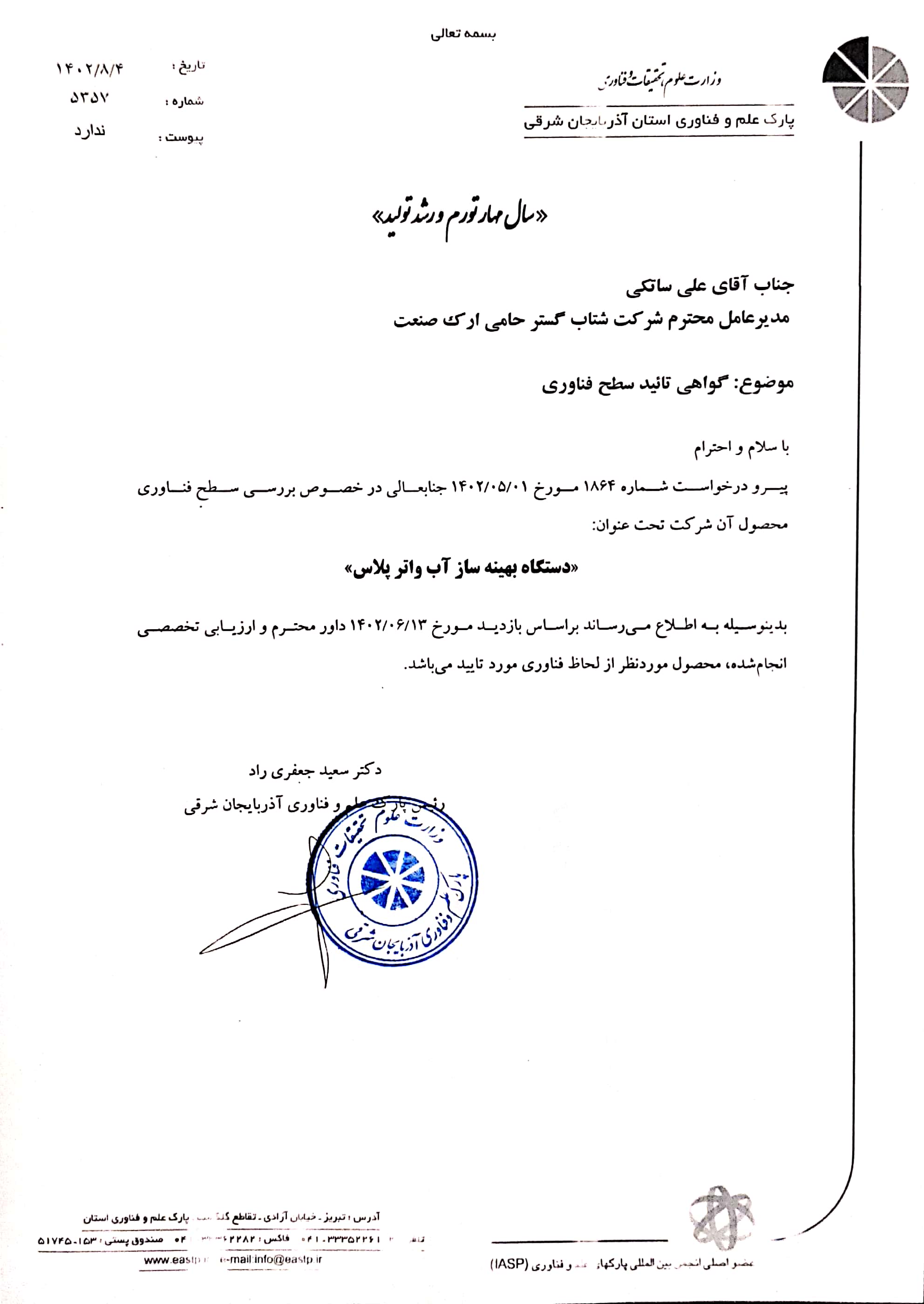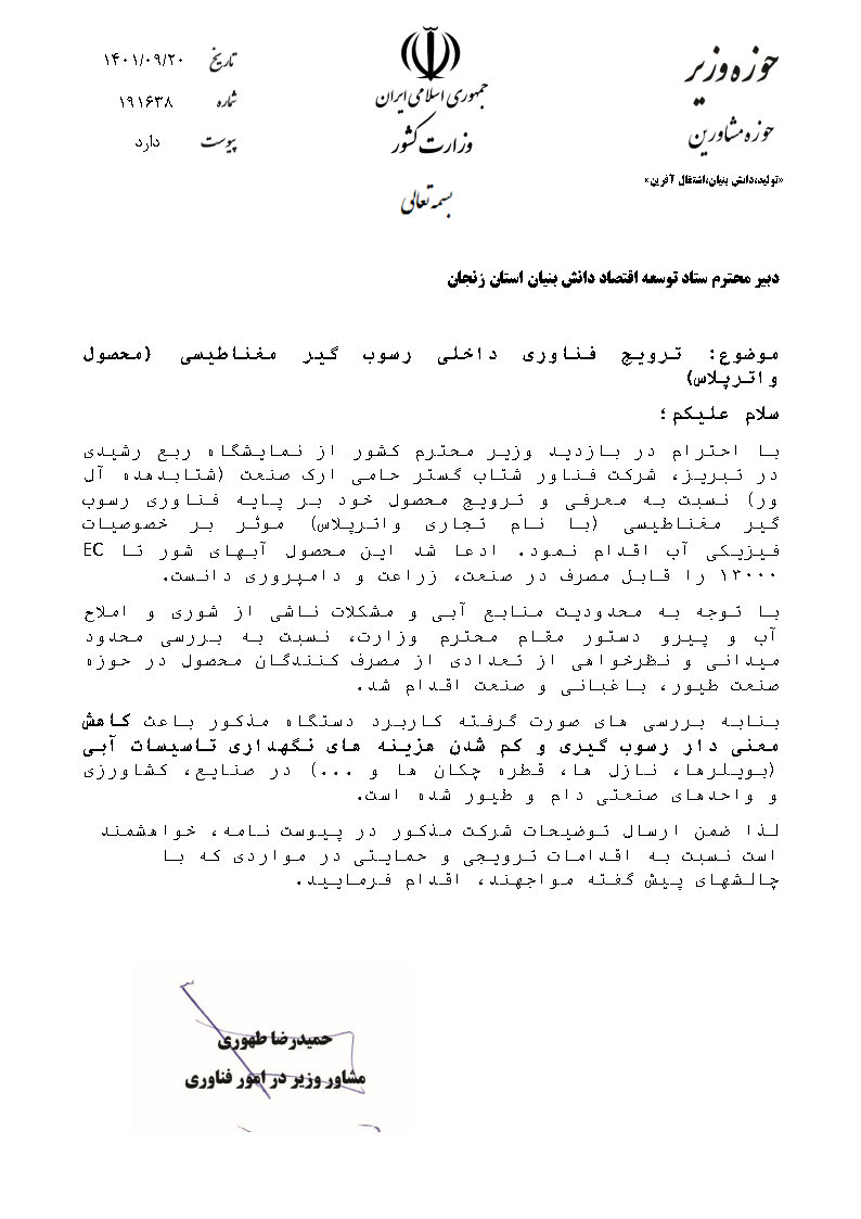 مجوزها و تاییدیه‌های دستگاه استراتژیک و دانش بنیان بهینه‌ساز آب واترپلاس: