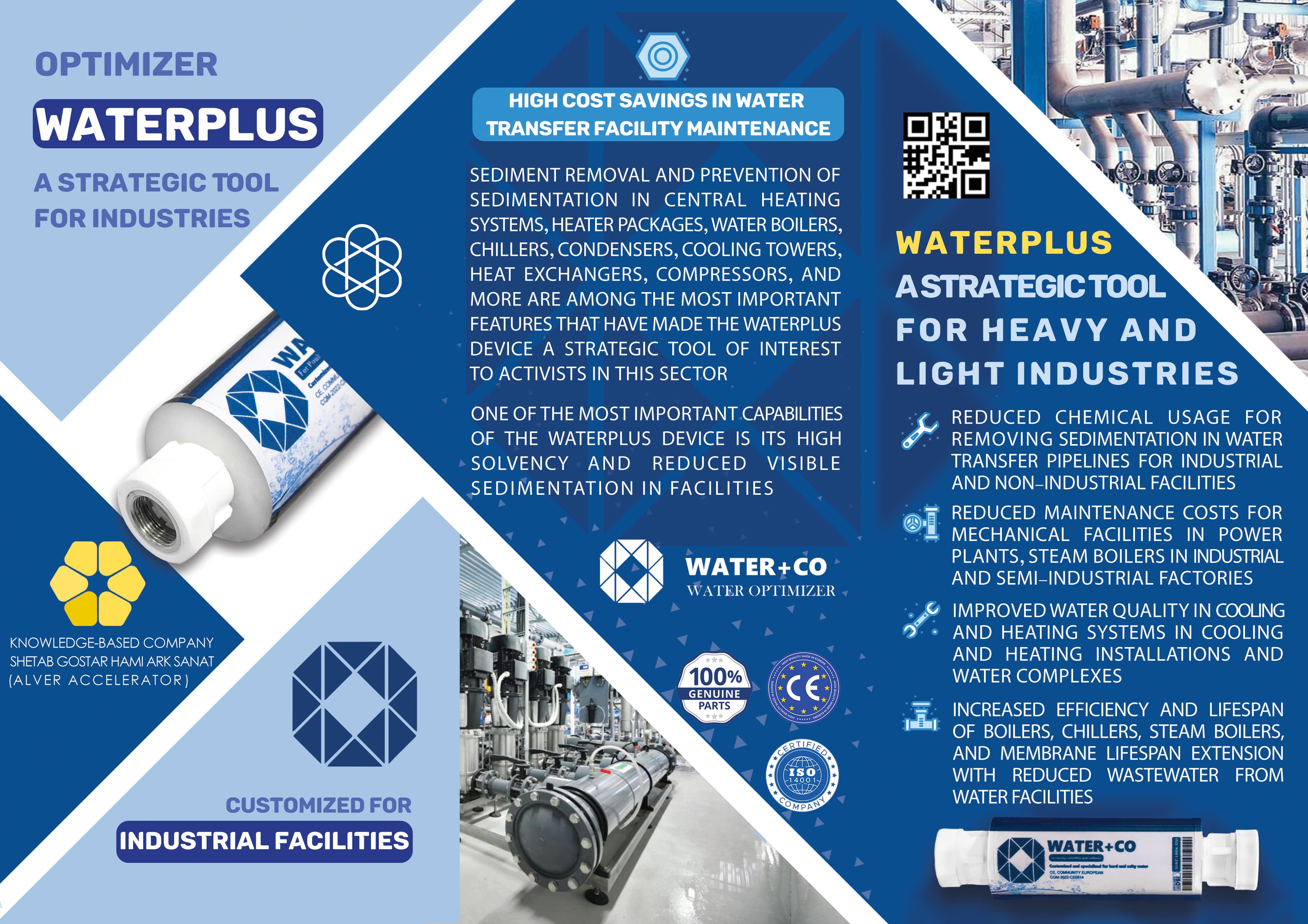 Considering the impossibility of industrial development with high EC waters and the critical situation of water in Iran and the world, the problem of water supply in the field of industry is faced with a problem that can be solved by relying on the knowledge and power of the elite youth and the society. The sentence "we can" was able to take a big step towards improving the quality of people's lives and with the blessings of the Almighty God, we produced the Waterplus water optimization device, which solves the issue of water supply for industries.